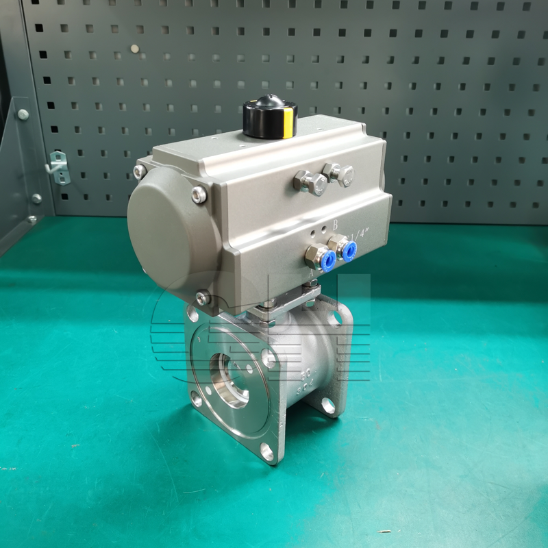2、本气动方球阀可安装在任意角度的管道上,应关闭安装为宜;焊接管道法兰时应将阀门密封口用板挡住以防止颗粒、杂物挫伤密封面,焊后取下阀门,对阀门密封面及管道内腔进行清洁,然后再安装固定阀门。